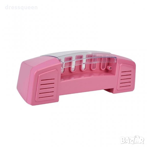 Моделът е изключително практичен , помагайки да подредите и предпазите четките от замърсяване. Има пластмасов прозрачен капак и 5 гнезда за четки, независимо дали са за възрастни или детски. Разполага с 2 чашки, в които можете да слагате паста за зъби, гримове и др.