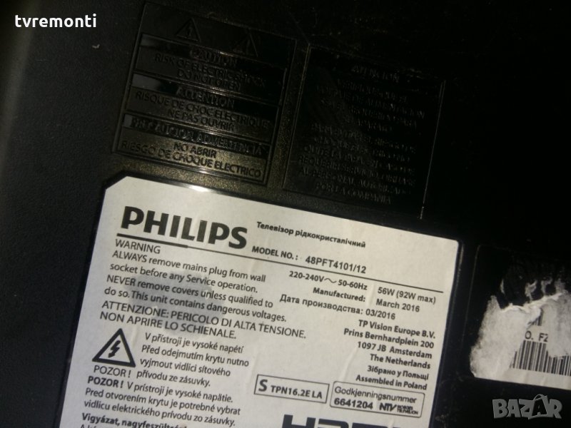 Mainboard 715G6947 M01-000-004Y модель PHILIPS 48PFH4101/12 panel PANEL TPT480LS-HN08.S REV.SG01A FULL HD тесвана от нашия техник