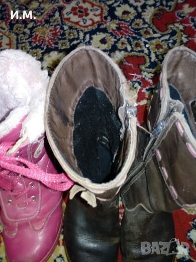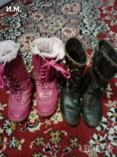 Кафяви ботушки от естествена кожа. В много добро състояние. Розовите ботушки са 35 номер, също в много добро състояние, за двата чифта общо 12 лв.
