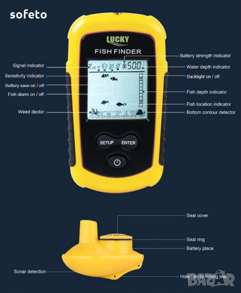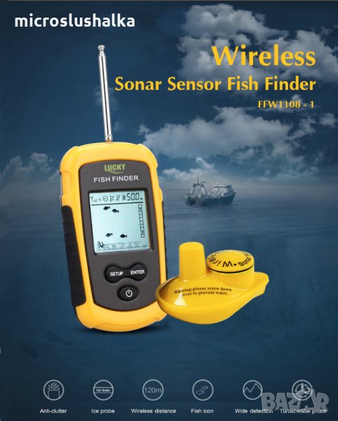 ПРОФЕСИОНАЛЕН Безжичен сонар Lucky - сензор за откриване на риба с аларма и фоново осветление, за прясна и солена вода, океан, река, езеро, море, лед, ледена вода, локатор на риба. НОВ НЕОТВАРЯН ВЛАГОЗАЩИТЕН