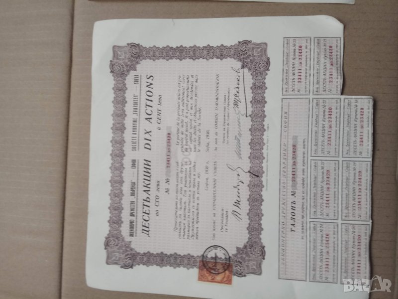 Продавам две акции : 100 лева 1930 година → Обява 23504678