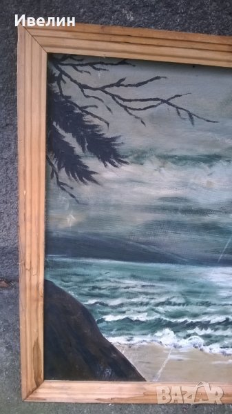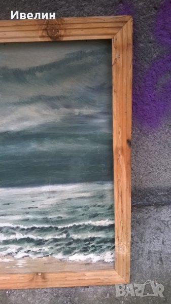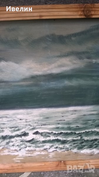 картина-море.масло на шперплат в дървена рамка с размери 67см/97см,вътрешни 61см/88см.