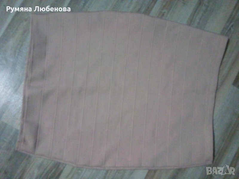 Невероятна бандажна пола , уникален, актуален цвят - пудра. Дължина-49см, ханш-40см.
