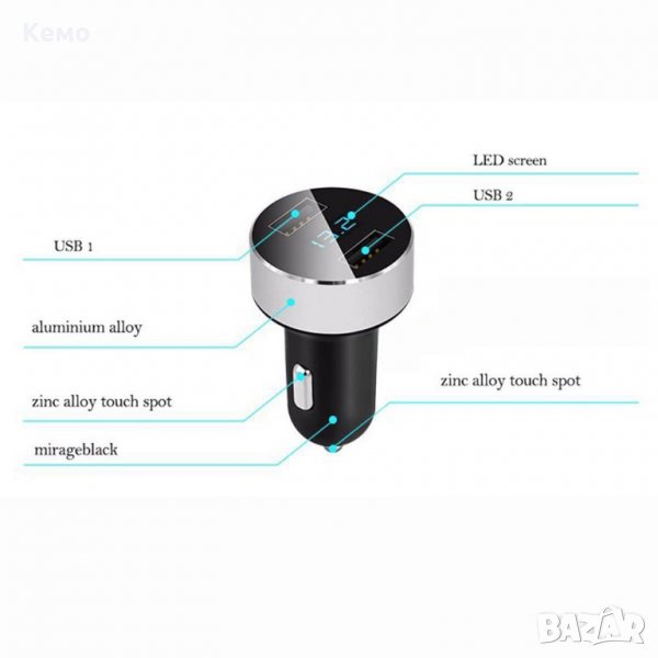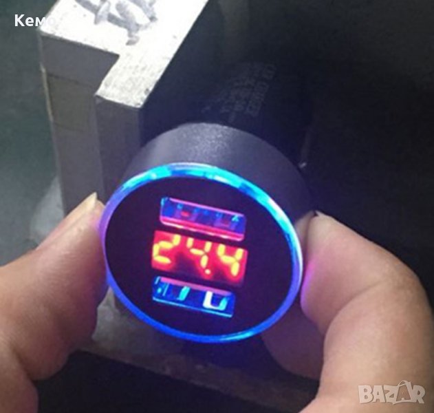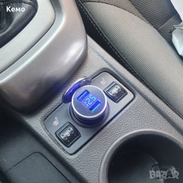 Двойно USB зарядно с Led дисплей показващ волтажа на акумулатора в колата и с възможност да захранвате таблет и смартфон или два смартфона с общ ток от 3.1А едновременно.
