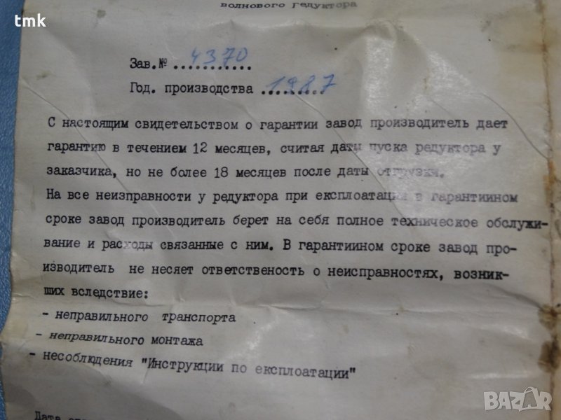 Фирма "Техно Маш Комплект" ЕООД предлага вълнов редуктор, българско производство на завод "Берое" - гр.Стара Загора. Редукторът е със следните параметри: