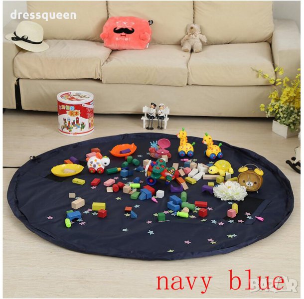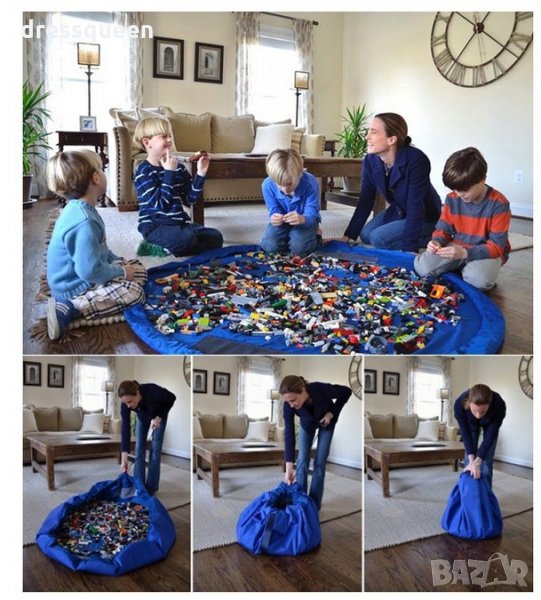 Органайзерът за играчки е решение на този проблем. Той е направен от мека материя, която може лесно да се почиства и е с размери от 100 см. Достатъчно, за да побере всички дребни играчки. Торбата за играчки може да се сгъва и по този начин да спестите място. Може да се използва и като игрално поле, така че да не събирате след това всичко. Може да се използва навсякъде,в къщи,на плажа или на пикник.