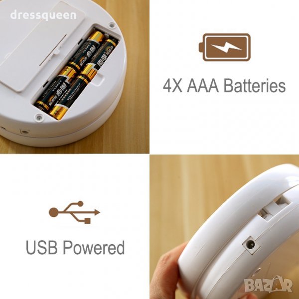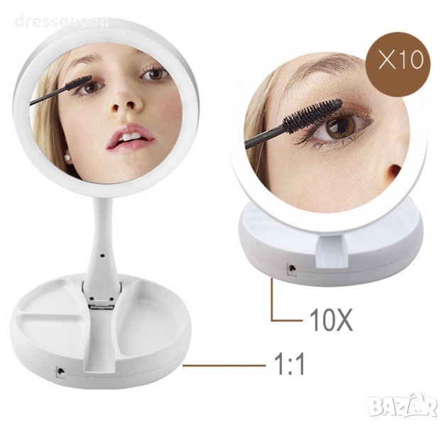 Друг сериозен плюс е, че огледалото е двустранно, т.е. от едната страна е нормално, а от другата увеличително. Така ще виждате в детайли лицето си. Огледалото се захранва с батерии, но може да се ползва и без осветлението, което се активира от бутон в основата. Страхотен избор за хората, които пътуват често, нямат много място на тоалетката или тя е позиционирана на неподходящо спрямо естествената светлина място.