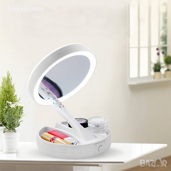 Сгъваемо огледало с LED осветление осигурява всичко нужно, за да направите грима си перфектен, да оформите веждите си правилно и да си осигурите комфорт във всеки един момент. Моделът е произведен от висококачествен материал в изчистен бял цвят. Разполага с подвижно рамо, което осигурява индивидуално нагласяване на ъгъла и височината, а като допълнение LED светлините дават нужната видимост, независимо от осветеността на помещението.