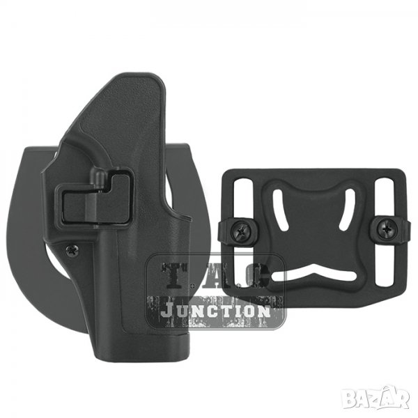 6. Полимерен кобур за външно носене с заключващ механизъм, в комплекта с лопатка и преставка за колан – 55лв (На въпроса става ли да сложа фенер,лазер, нещо по него и да ги пъхна в кобура НЕ НЕСТАВА, това е кобър с заключващ механизъм. Има друг тип Кобур отрязан,който е за тази цел