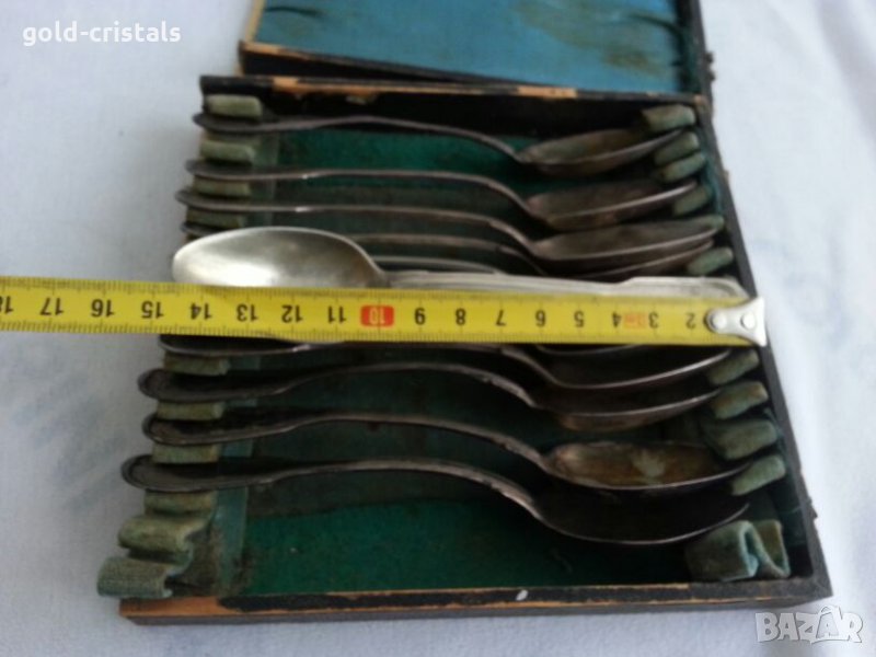 немски посребрени прибори за хранене лъжички за чай кафе десерт маркирани 12бр -160лв може 6бр-80лв маркирани имат нужда от почистване да лъснат кутията е дървена в недобро състояние сервиз комплект сет лот ретро арт декор винтидж колекция стари старинни антикварни предмети обзавеждане за дома и семейството подходящи за подарък за ценители и колекционери