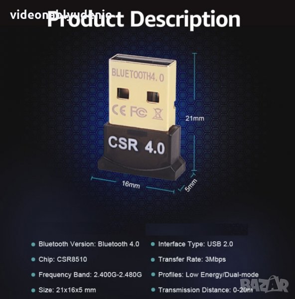 Мини USB Bluetooth 4.0 адаптер с висока скорост до 3 Mb в секунда!