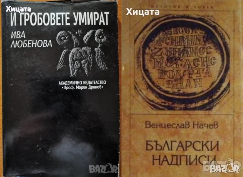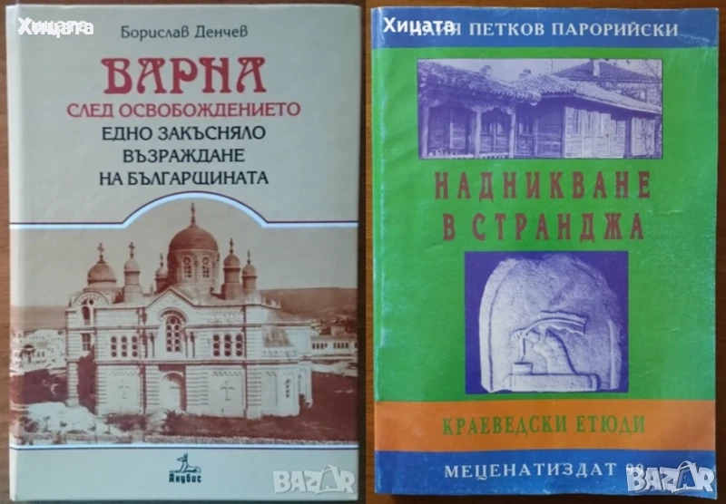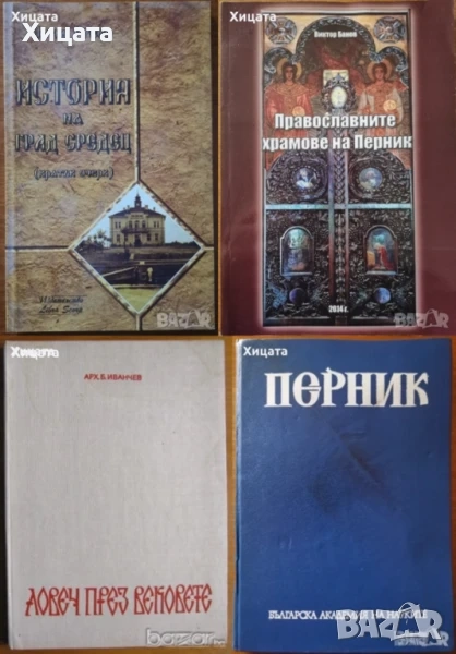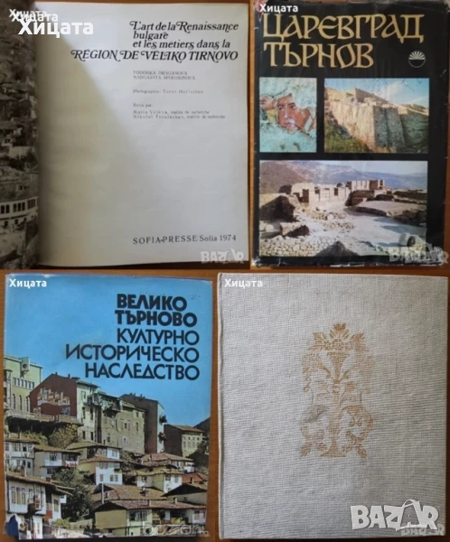 L'art de la Renaissance bulgare et les métiers dans la région de Véliko Tirnovo / Народно и Възрожденско изкуство и архитекура от Велико Търново/,T. Draganova, M. Spiridonova - албум на френски език,Sofia-presse,1974г.144стр. - 70лв. Царевград ТърновТом 1:История на проучванията, архитектура, надписи,монети,културни пластове преди изграждането на двореца,БАН,1973г.356стр. - 70лв. Велико Търново. Културно-историческо наследство,Йордан Димитров, Тодорка Драганова, Петър Славчев, Стефан Цонев,Изд.Септември,1981г.160стр. - 50лв Чудото Цари Мали град,Сборник,2013г.270стр.. - 70лв. Шумен и шуменската крепост,Вера Антонова,изд.Антос,1995г.216стр. - 70лв. Плиска -Преслав.Проучвания и материали: Т.1,БАН,1979г.212стр.Изключително запазена! - 90лв.Ловеч през вековете,Борис Иванчев,Изд.Ловеч,1973г.87стр.отлична,с петънца по корицата - 50лв. Перник.Том 1:Поселищен живот на хълма Кракра от V в. пр.н.е.-VI в. от н.е.,БАН,1981г.272стр. - 70лв. Православните храмове на Перник,Виктор Банов,Дворец на културата,2014г.168стр. - 30лв История на град Средец.(Кратък очерк),Петко Русев,Либра Скорп,2005г.142стр.Отлична! - 20лв Варна след Освобождението.Едно закъсняло възраждане на българщината,Борислав Денчев,Анубис,1998г.352стр.Посвещение и подчертан текст на места. -80лв. Надникване в Странджа.Краеведски етюди,Илия Петков Парорийски,Меценатиздат 99,1999г.160стр.Голям формат! - 70лв. И гробовете умират.Надгробната пластика в България XVII - XIX в,Ива Любенова,АИ "Проф. Марин Дринов",1996г.231стр. - 50лв Български надписи,Венцеслав Начев,Изд.Христо Ботев,1994г.272стр. - 50лв