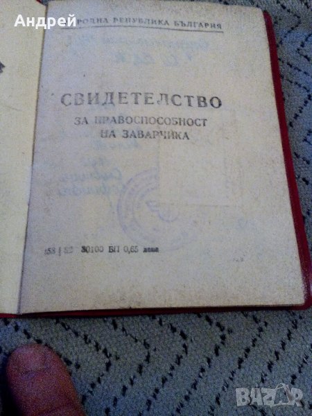 Старо свидетелство за правоспособност на заварчика → Обява 23588429