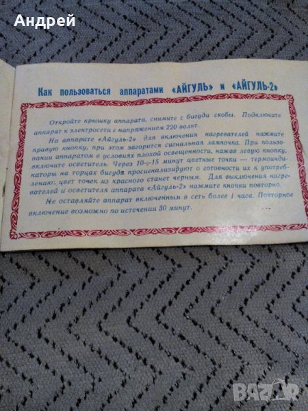 Инструкция за експлоатация апарат Айгуль → Обява 23588522