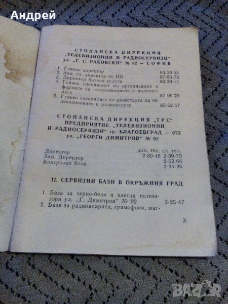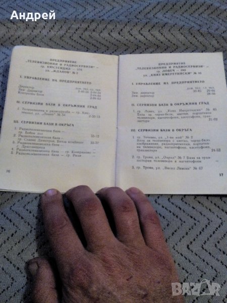 Списък на адресите и телефоните на СД"Телевизионни Сервизи", снимка 1 - Антикварни и старинни предмети - 23588558 Списък на адресите и телефоните на СД"Телевизионни Сервизи", снимка 2 - Антикварни и старинни предмети - 23588558 Списък на адресите и телефоните на СД"Телевизионни Сервизи", снимка 3 - Антикварни и старинни предмети - 23588558 Списък на адресите и телефоните на СД"Телевизионни Сервизи", снимка 4 - Антикварни и старинни предмети - 23588558 1/4