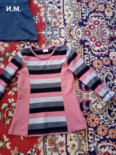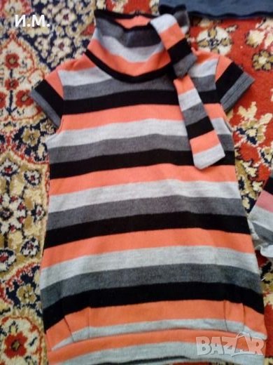 В отлично състояние са. Много малко носени. Бордо,черно и сиво блузката е с дължина от рамо 50 см, ръкав от рамо 40 см. Полото червено, сиво и черно е с дължина от рамо 50 см. Туниката- рокличка с котето е с дължина 58 см от рамо, ширина мишниците всички се разтягат поне до 37 см. Черното сукманче е с дължина от рамо 61 см. Едната за 5 лв,всички за 17 лв.