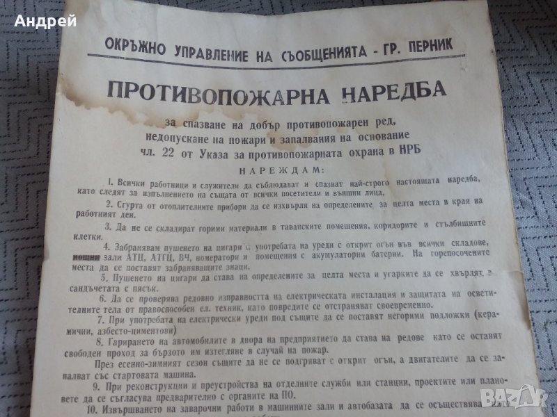 Стара противопожарна наредба → Обява 23596700