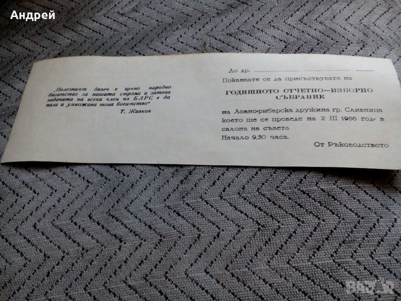 Стара покана ЛРС, снимка 1 - Антикварни и старинни предмети - 23596952 Стара покана ЛРС, снимка 2 - Антикварни и старинни предмети - 23596952 1/2