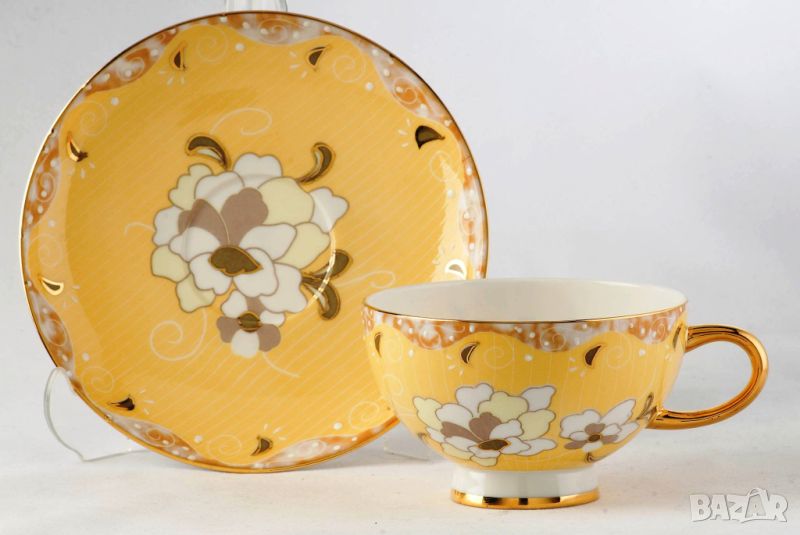 Красив комплект за кафе от фин, костен порцелан рисуван със злато → Обява 23600504