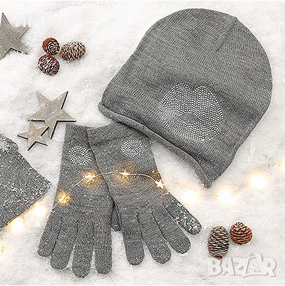 Комплект: шапка, шал, ръкавици в подаръчна кутия, Touchscreen функция.