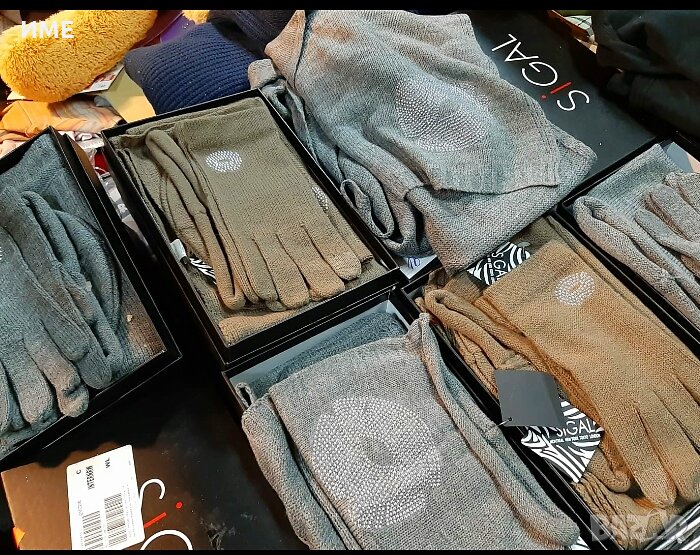 Комплект SIGAL STYLE: шапка, шал, ръкавици в подаръчна кутия, Touchscreen функция → Обява 23609144