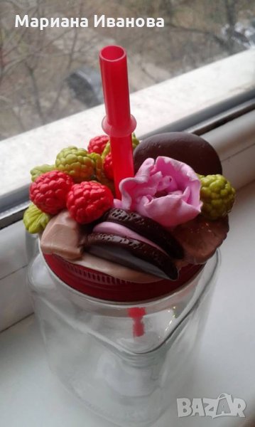 1/Ръчно декорирани с полимерна глина големи стъклени буркани за сладки. Красиви и практични. Напълнете със сладки и подарете!
