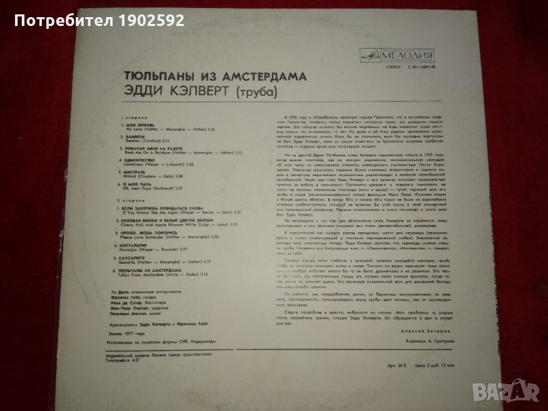 Эдди Кэлверт‎– Тюльпаны Из Амстердама, снимка 1 - Грамофонни плочи - 23619446  Эдди Кэлверт‎– Тюльпаны Из Амстердама, снимка 2 - Грамофонни плочи - 23619446 1/2