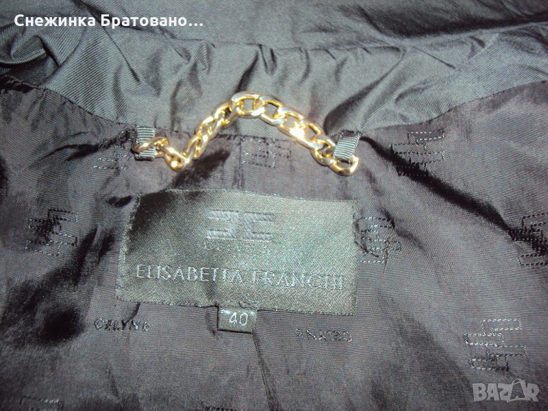 Дамско късо яке - болеро Elisabetta Franchi. Състояние Ново. Носено до пъти наистина. Много лек плат с подплата. Дължина на ръкава 47 см. Дължина на гърба 45 см. Якето е тип болеро 100 % оригинално. Номер 40. Отпред има цип с логого на марката!