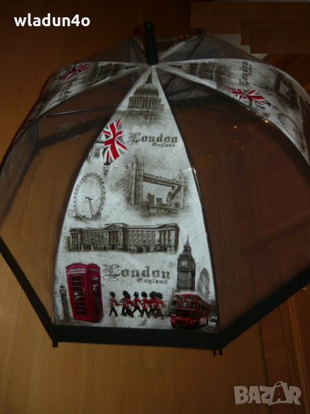 НОВИ Интересни прозрачни чадъри с типичните английски мотиви и др. картинки.