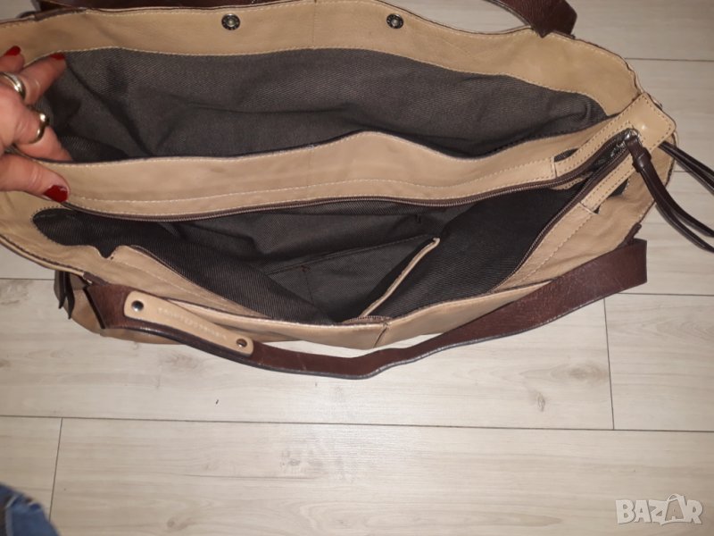 Голяма светлокафява чанта марка Francesco Biasia с къси дръжки → Обява 23623690