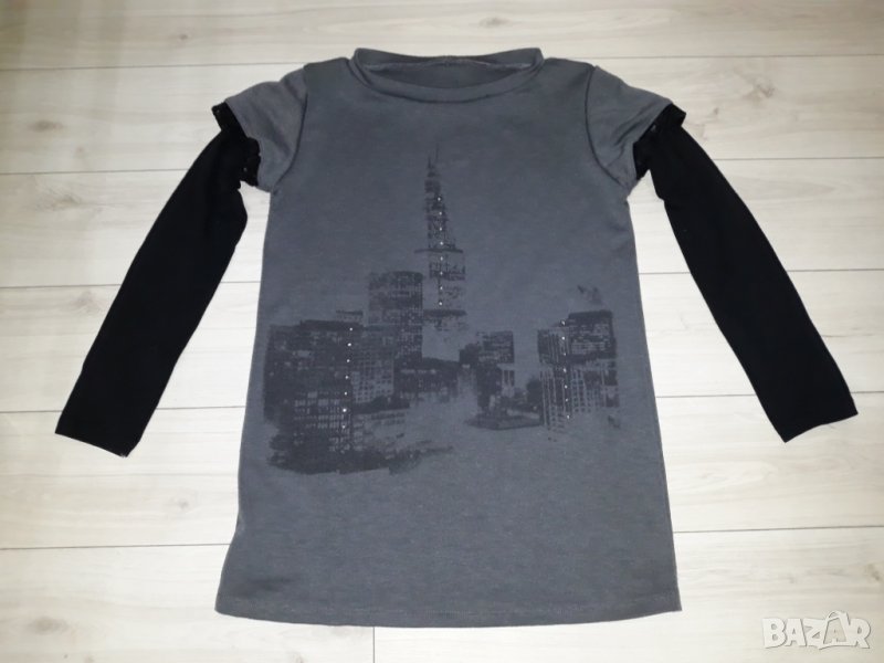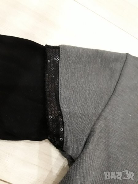 Дамска блуза с дълъг ръкав сиво и черно с камъчета с двоен ръкав с пайети → Обява 23625129