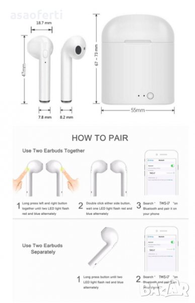 Bluetooth слушалки i7S TWS - ултра ниска консумация,