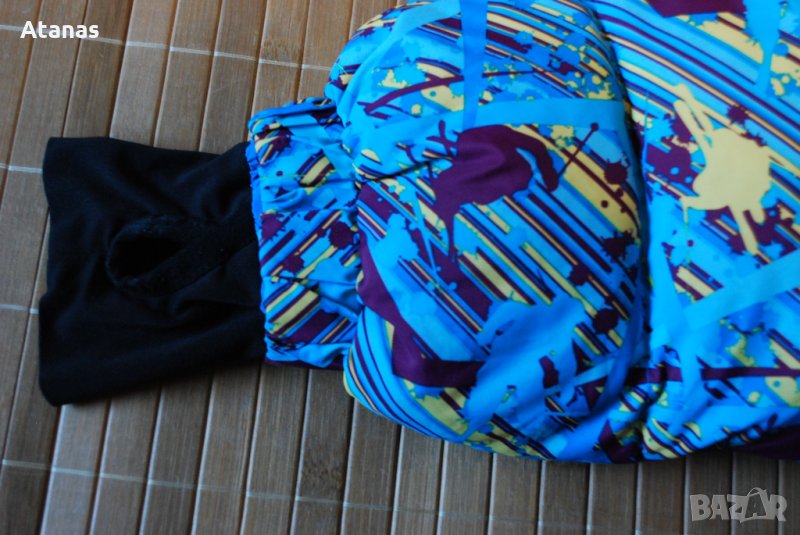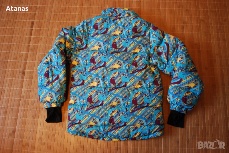 Якето е със страхотен дизайн, пълнеж гъши пух, има два външни джоба с ципове, регулация на кръста снежна пола, която се сваля, гети от ликра на ръкавите.