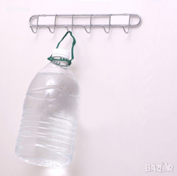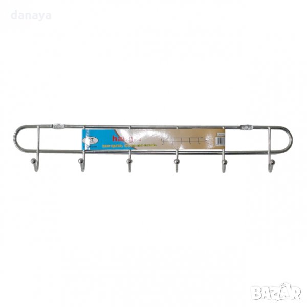 Метална стенна закачалка с 6 куки за закачане. Закачалка за дрехи, колани или други аксесоари.
