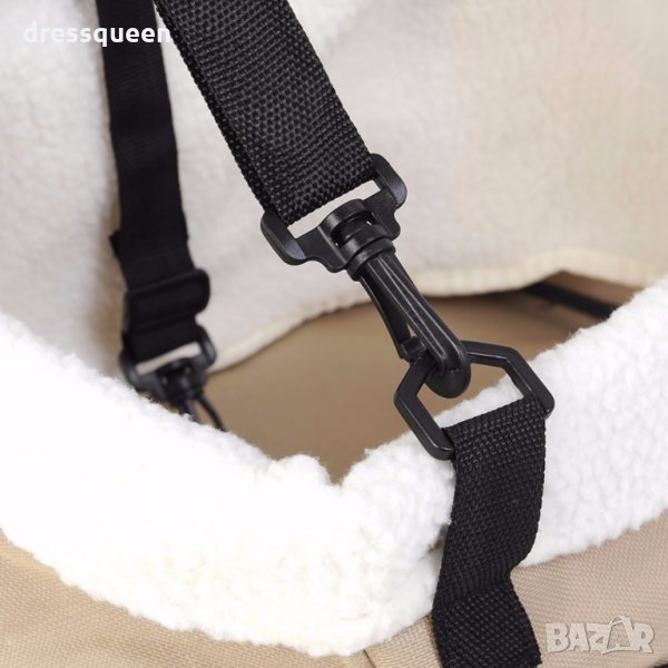 Този модел е с квадратна форма и е произведен от устойчив материал с мека подплата по стените. Осигурява уединение и чуство за сигурност и комфорт на животинчето. Разполага със специални колани за закрепване към автомобилната седалка и халка за закопчаване на каишката на кучето. Така то няма да напусне чантата по време на път.
