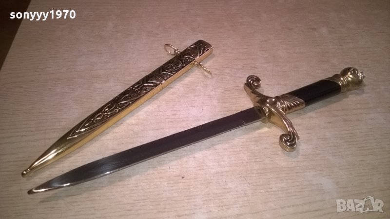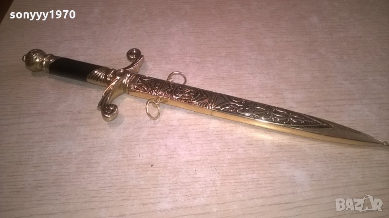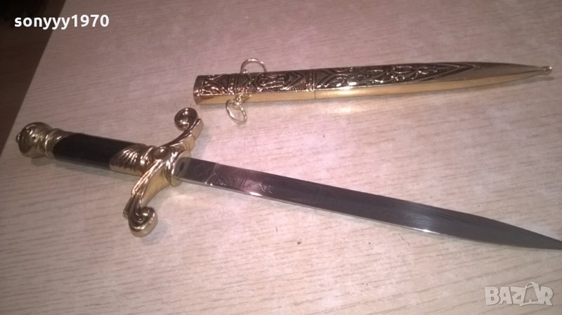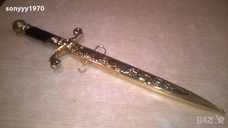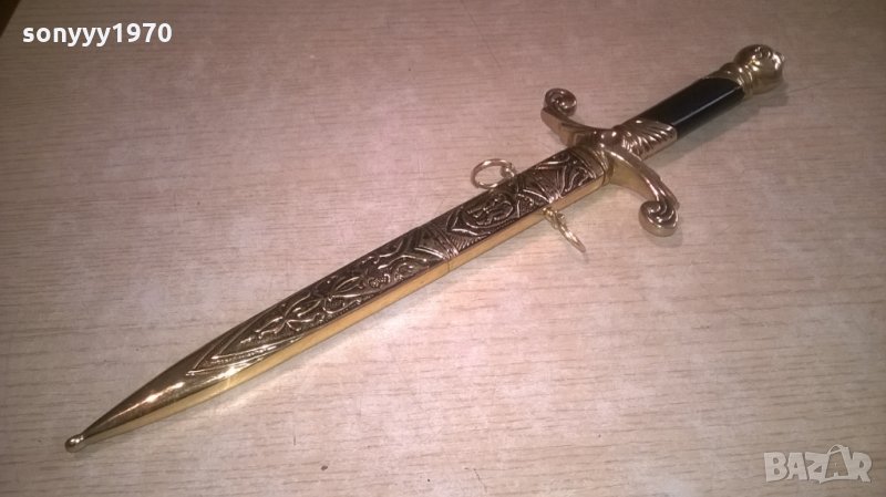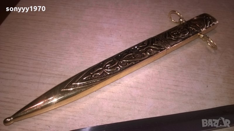 gold edition-красив и стилен с релефи и орнаменти-метален и масивен-Сувенирен нож с метална ножница и ръкохватка. Дължина: 38 см.-за колекция декорация или ползване-антика-цвят злато-поръчки само тук в саита! от днес 28.02.22г пращаме със спиди или еконт с преглед и тест след превод на капаро за куриерската услуга поради зачестили некоректни потребители-поръчки само в тук в саита! по телефона и със смс не! краини цени! бартери не правиме! всеки ден нови неща-още над 18000 обяви тук