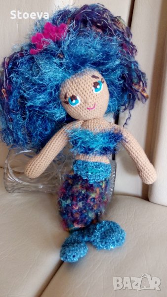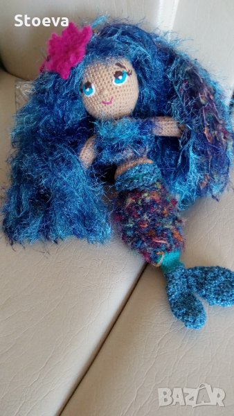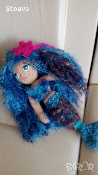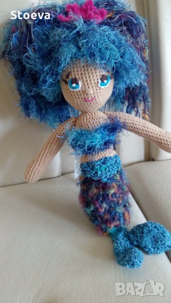 Русалка , от дълбините на морето . Изцяло ръчна изработка, пълнеж - силиконов пух . Дължина 47 см. Дългата и гъста коса може да се оформя в различни прически . Поради естеството на използваните материали , моделът не може да се повтори в същия вид . Куклата може да се пере . Доставка с ЕКОНТ , наложен платеж .