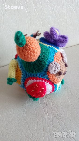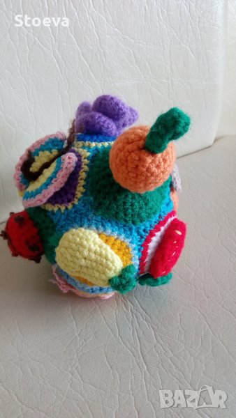 Забавна образователна топка с много плодове и животинки. Малкото дете се учи да разпознава цветовете , плодовете и животните .Топката е изплетена от памучни , антиалергични прежди и е пълна със силиконов пух .Диаметър около 12 см. Може да се пере . Доставка с ЕКОНТ , наложен платеж .