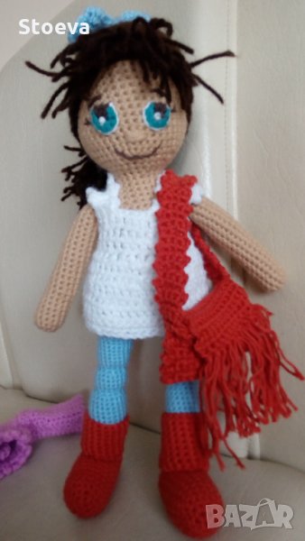Ръчно плетена кукла Катерина - бебешки полиакрилни прежди , пълнеж - силиконов пух . Катерина е висока 36 см. Косичката дава възможност за различни прически . Може да се пере с мек перилен препарат . Доставка с ЕКОНТ , наложен платеж .