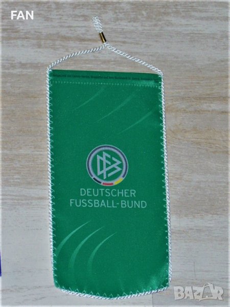 1) Флагче на Германия, изобразяващо успехите на женския национален отбор (показано е от двете страни). То е с размери 10,5 см х 20 см. - 7 лв.