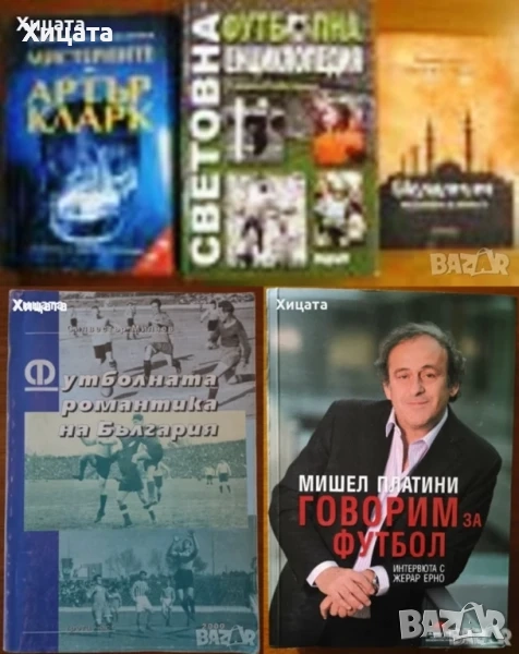 Антична рисувана керамика от България,Михаил Лазаров,Български художник,1990г.144стр.Отлична! Без обложка- 90лв;С обложка - 100лв Технология на керамичните изделия,Енчо Герасимов,Светлан Бъчваров,Техника,1977г.628стр. - 120лв Центрове антична керамика Долна Мизия,Богдан Сулов, НА ФРЕНСКИ ЕЗИК,София прес 1976г.112стр.Centres Antiques de Poteries en Mesie Inferieure,Bogdan Soultov, Отлична със забележки по обложката! - 50лв Световна футболна енциклопедия.3-то преработено и допълнено издание,Румен Пайташев,Труд,2010г.560стр. - 70лв. Футболната романтика на България.Част 3,Силвестър Милчев,2000г.540стр.С автограф от автора!! - 50лв Говорим за футбол.Интервюта с Жерар Ерно,Мишел Платини,Жануа-98,2015г.338стр.Отлична! - 30лв Мистериите на Артър Кларк.От Атлантида до явленията на Богородица,Изд.Мария Арабаджиева,1996г.288стр. - 35лв.Избрани произведения.Наследниците.Кулата.Богът-скорпион.Пук-Пук.Извънреден пратеник,Уилям Голдинг,Народна култура,1986г.586стр. - 40лв Паяжината и скалата,Томас Улф,Народна култура,1985г.754стр. - 30лв Обстоятелства,Радой Ралин,Български писател,1973г.250стр. - 30лв Човешки нрави, Юлиан Вучков,Народна младеж,1979г.348стр.Отлична! - 25лв