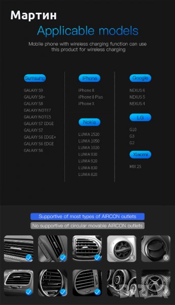 Подходящи: мобилни телефони с функция за безжично зареждане
