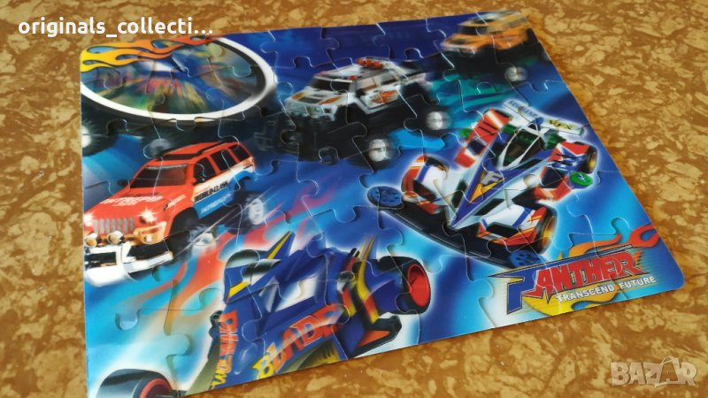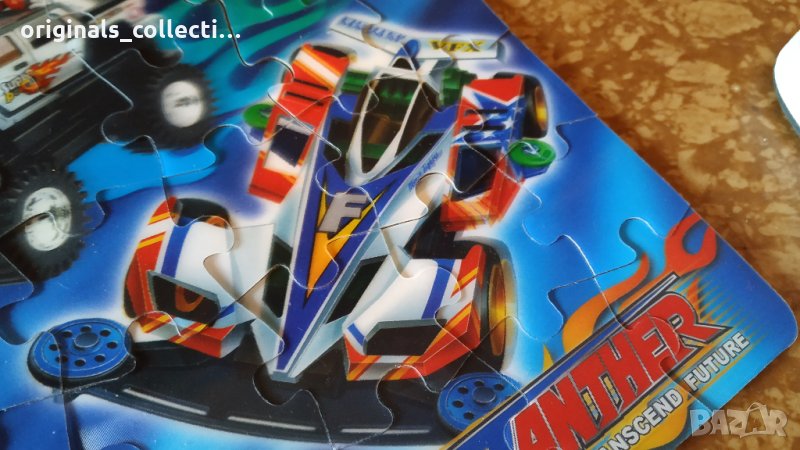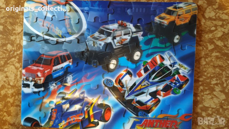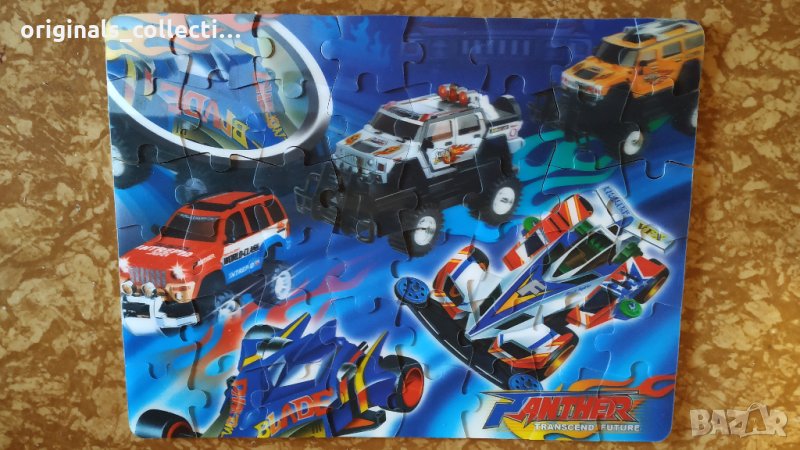 Подходящ за колекционери, аз лично съм го държал в колекция. Както е видно от снимките е в отлично за възрастта си състояние, тъй като е прилежно съхраняван. Пъзелът ми е подарък, внесен от Германия. На него могат да се забележат два състезателни булида и три джипа, както и логото на бранда. За съжаление не пазя кутията, но за сметка на това съдържа всичките си части в отлично състояние. Големината му е около педя и половина - височина и две педи - широчина.
