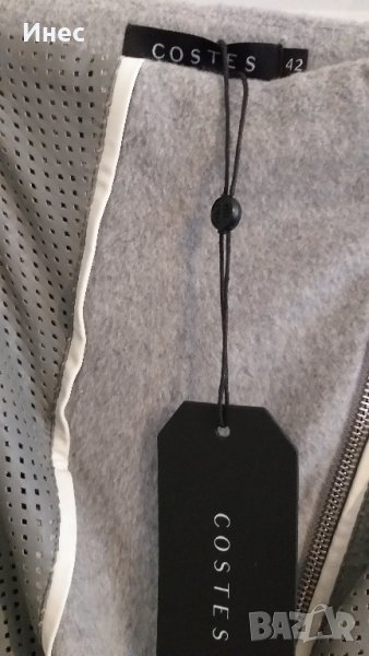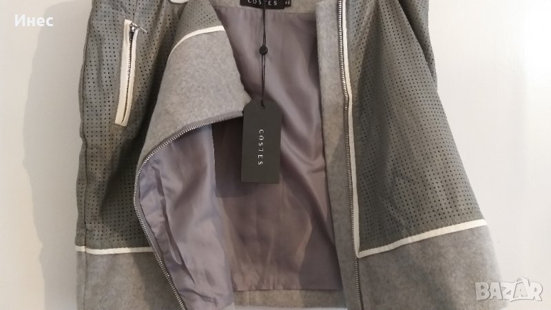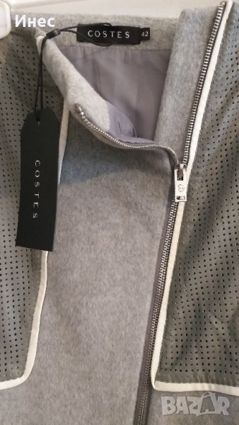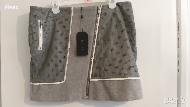 Чисто нова пола ,сива на цвят /вълна и еко кожа/. Много интересен модел с цип от пред,има и джобчета с цип. Талия-47см дължина 44см. Много подходяща за предстоящите празници.Реалната и цена е 50евро.