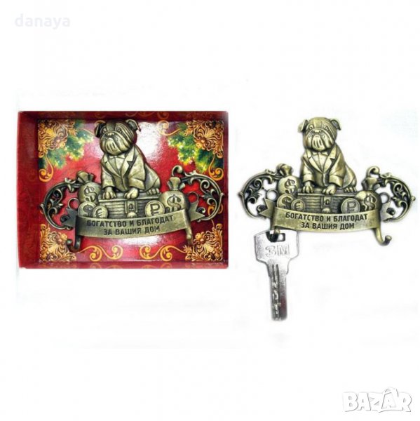 Малка метална закачалка за ключове с две кукички за закачане. Декоративна поставка за ключове с надпис "Богатство и благодат за вашия дом". Закачалката е чудесен подарък или добавка към подарък за дом, подарък за нова година, подарък за Коледа, подарък за приятел, подарък с положително послание!