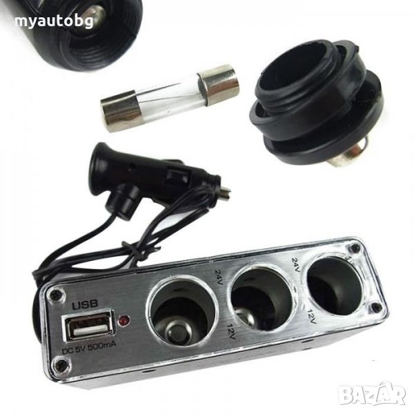 Зарядно за автомобил с 3 входа и USB 12v/24v