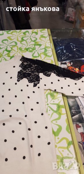 Продавам дамска бяла блуза с черни точки и дантела мека финно плетена , снимка 1 - Блузи с дълъг ръкав и пуловери - 23722603 Продавам дамска бяла блуза с черни точки и дантела мека финно плетена , снимка 2 - Блузи с дълъг ръкав и пуловери - 23722603 Продавам дамска бяла блуза с черни точки и дантела мека финно плетена , снимка 3 - Блузи с дълъг ръкав и пуловери - 23722603 Продавам дамска бяла блуза с черни точки и дантела мека финно плетена , снимка 4 - Блузи с дълъг ръкав и пуловери - 23722603 1/4