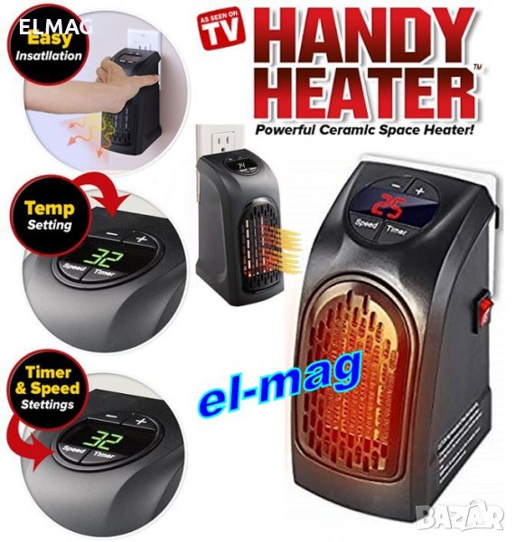 Тествахме уреда и останахме доволни от употребата му. Подходящ е за нормално затопляне на неголеми помещения. Има представянето на 1KW "духалка", но е 2,5 пъти по икономичен. Не очквайте един уред да затопли къщата ви, но ще свърши много добра работа срещу ниска цена и малък разход. Голямо удобство е компактния размер, който позволява да се пренася лесно и удобно. HANDY HEATER е едно добро икономично решение за затопляне на неголеми помещения. При никакви обстоятелства не може да разчитате на HANDY HEATER като основен отоплителен уред при много студени/големи помещения и желание за високи температури 28.С" и повече градуси. HANDY HEATER предлага супер икономично затопляне на малки и средни помещения и при не екстремно ниски температури. Твърдението, че уредът мигновенно ще затопли помещението е абсолютно несъответствие с реалността и подвеждащ търговски прийом.