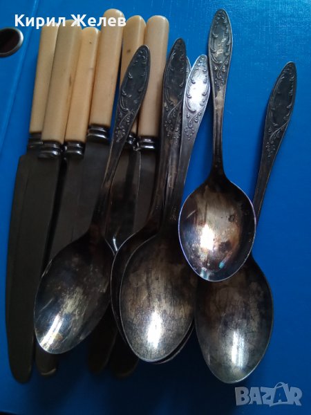 Шес ножчета и шес лажички запазени добре посребени ,антикварни 23 см ножчета 19,5 см лъжички