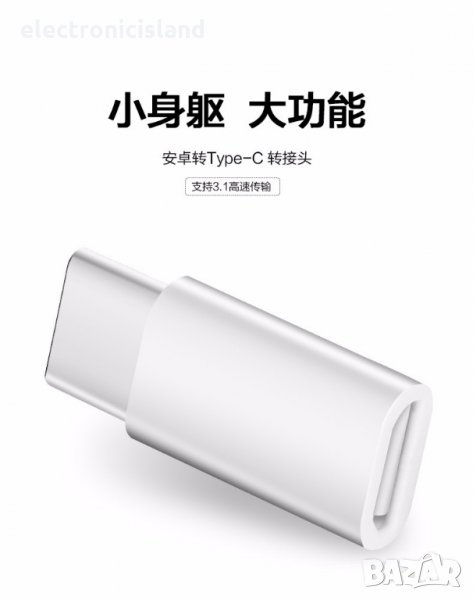 Адаптер преходник от женски микро / micro USB към мъжки тип / type C